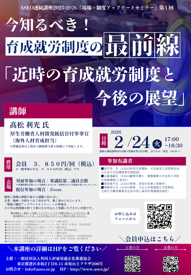 ・2022.02.24~:「2022年度 ASEO主催 特別連続講義『入管法概論』」