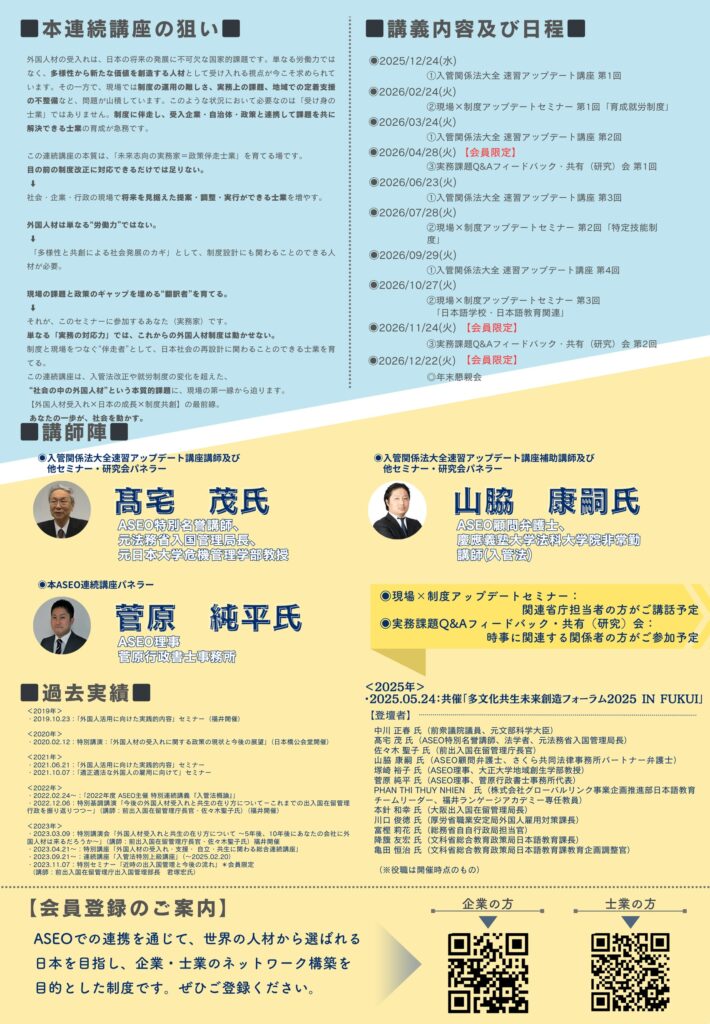【2025-2026 ASEO連続講座】外国人材受入れのフロントランナーへ!